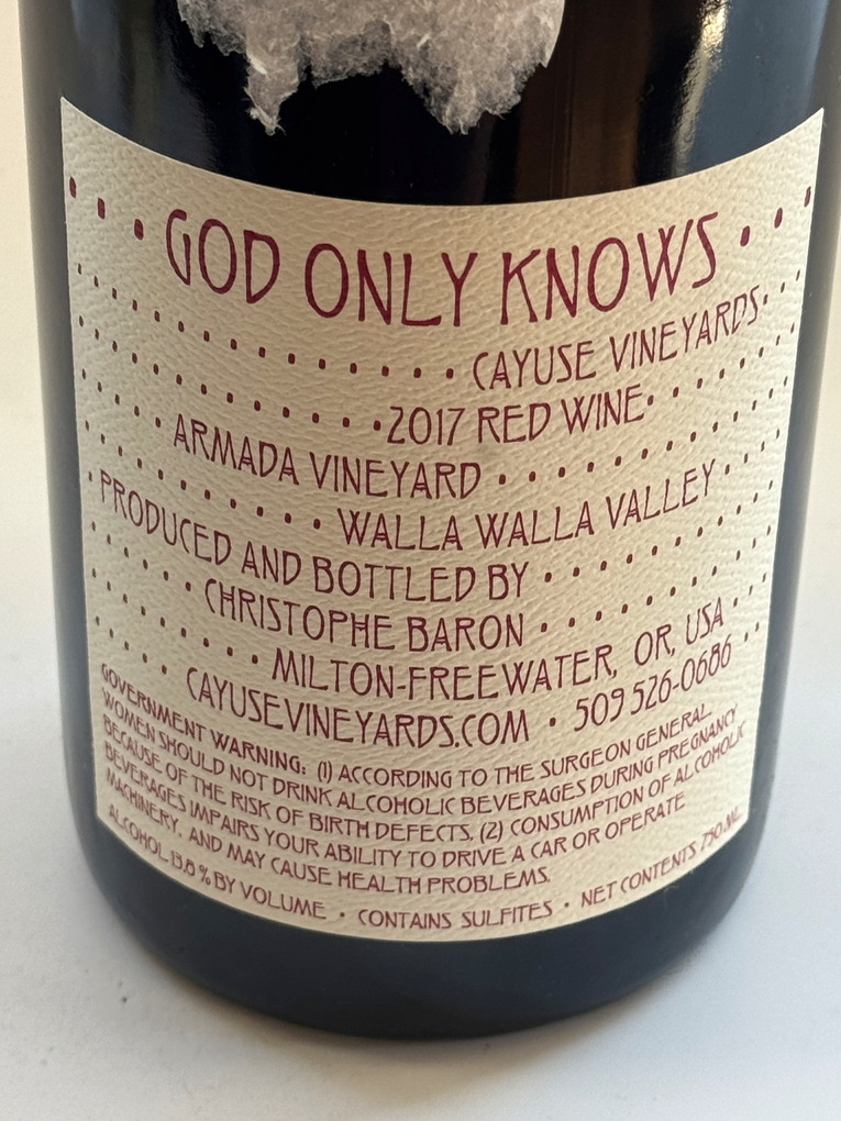 Cayuse Grenache God Only Knows 2017