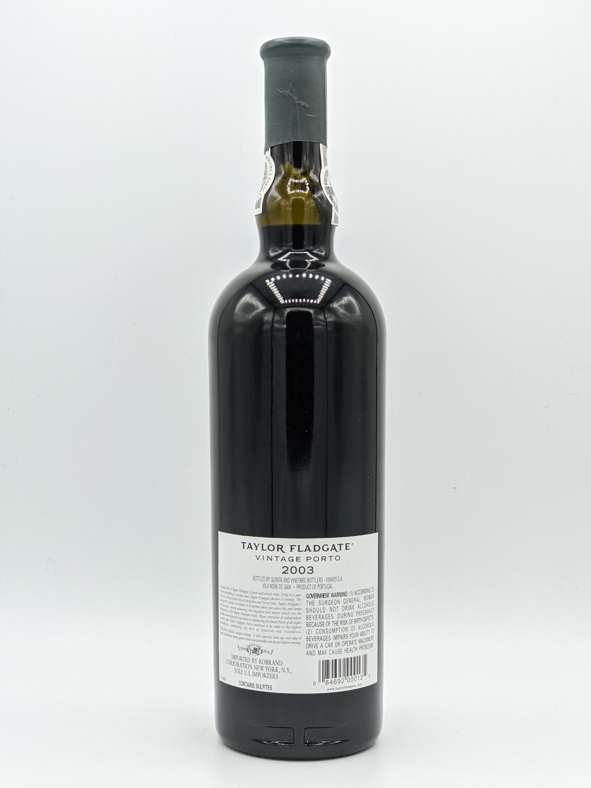 The 2003 Taylor Fladgate Vintage Port improved each time I raised it to my nose or mouth. It displays a black color and a salty, graphite-laced nose packed with sweet black fruits that is reminiscent of a stellar vintage of Chateau Latour. With air, notes of molasses, burnt sugar, spices, and jammy plums emanate from the glass. Full-bodied, hugely dense, immensely rich, as well as thick, this behemoth is also amazingly balanced and harmonious. Raisins, molasses, licorice, black cherries, plums, and a distinctive note of violets are found in its complex, seamless character. Its interminable finish reveals additional notes of chocolate, kirsch, red as well as black currants, dark cherries, and rose blossoms. Armed with exceptional power, depth, and purity, this Taylor will proudly stand shoulder to shoulder with the finest ever crafted by the Fladgate Partnership. -- Robert Parker's Wine Advocate
